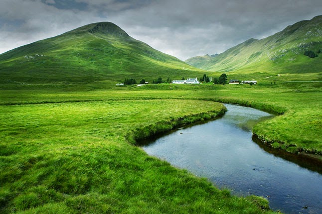 I created a sketch before starting this painting or even finding the above photo so I already had an idea of the composition I was going for so I had to change a number of things: first and most noticeably I change the resolution significantly and my painting is more 'widescreen' as I wanted to capture a certain sense of a 'landscape' that I achieved in my first photo bash and had since neglected. I also ended up changing the path of the river, in the photo graph it bends to the left in the middle of the image which I felt restricted the sense of scale and also harmed the composition with the camp (being my focus) on the right. So I added in the river to run into the mountains and lead the the composition more naturally like that where it would curve around the mountains leading the eyes back to the camp.